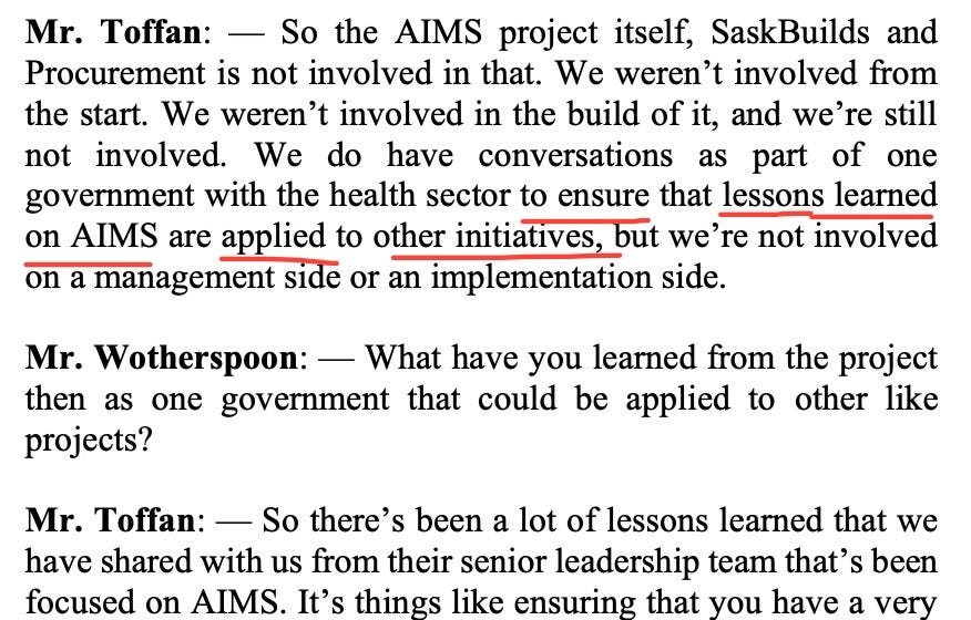 We should probably talk about the Saskatchewan Health Authority (SHA) and its multi-year, multi-million dollar failed rollout of its latest creation, the Administrative Information Management System (AIMS).